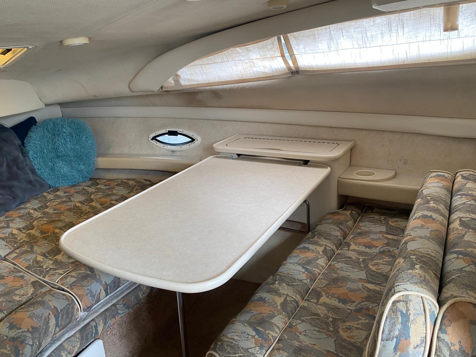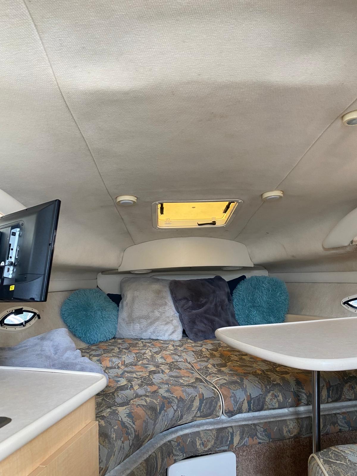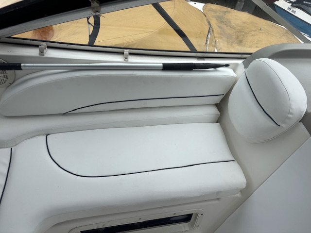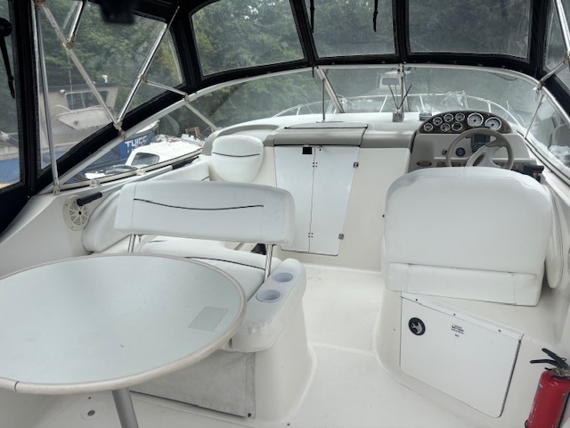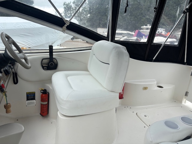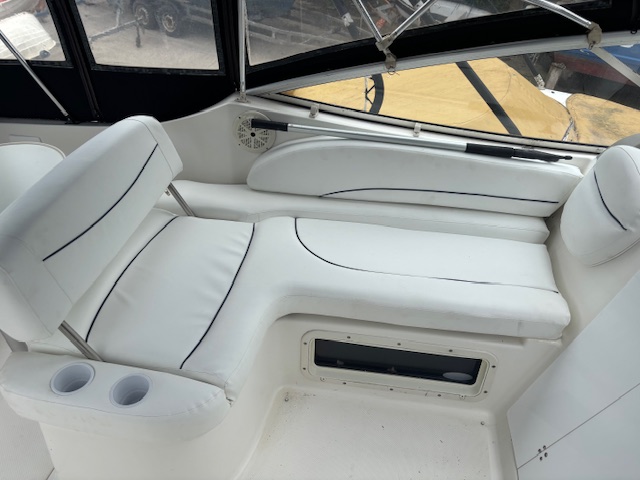 2000 Bayliner 2855 Ciera “Bambino” – 8.7m family cruiser with 5.7L MerCruiser (376 hrs). Well-maintained, spacious, and turnkey-ready. Features full canvas, upgraded upholstery, galley, enclosed head, and sleeps 4. Ideal for weekend cruising or family adventures.
