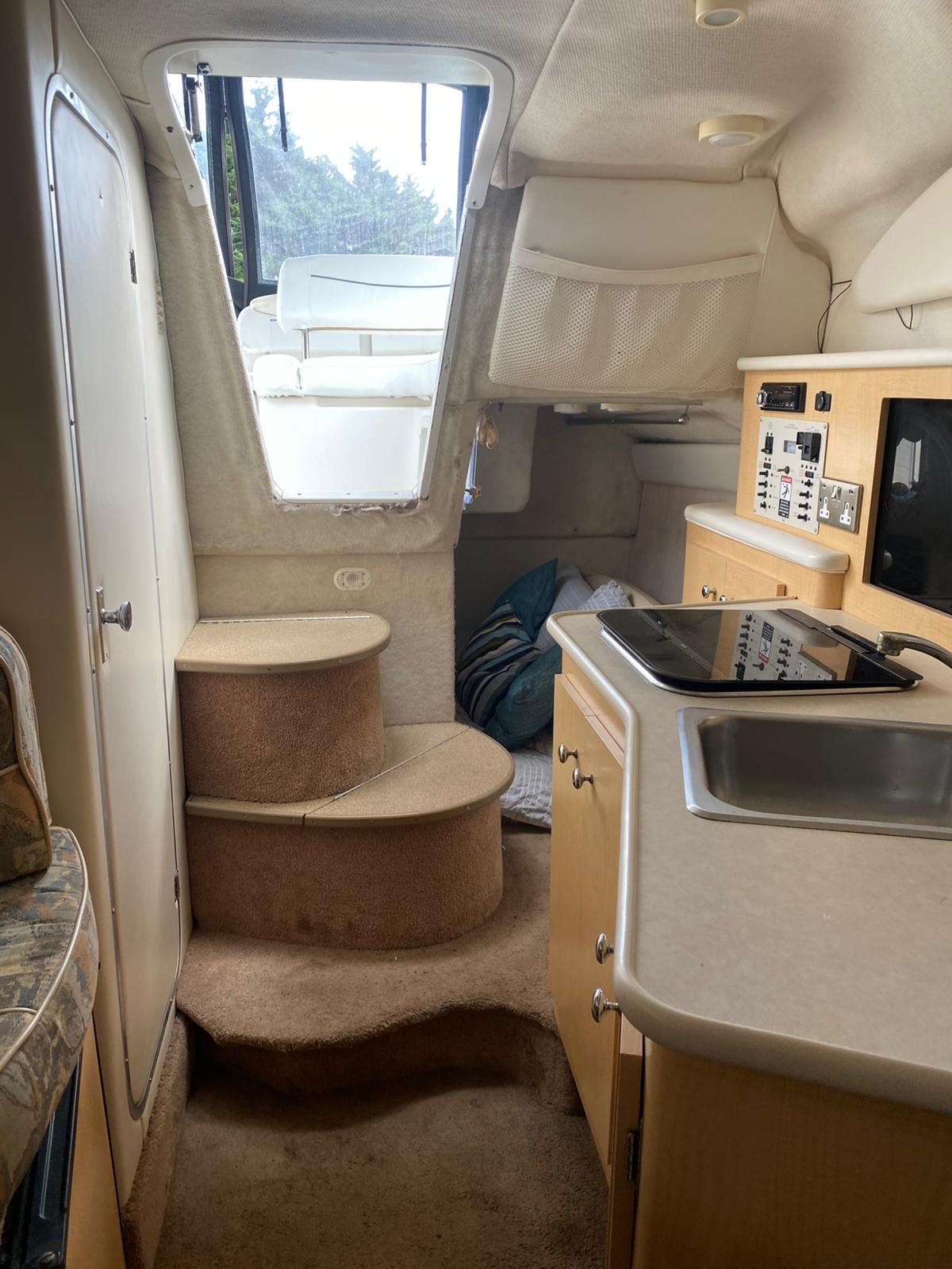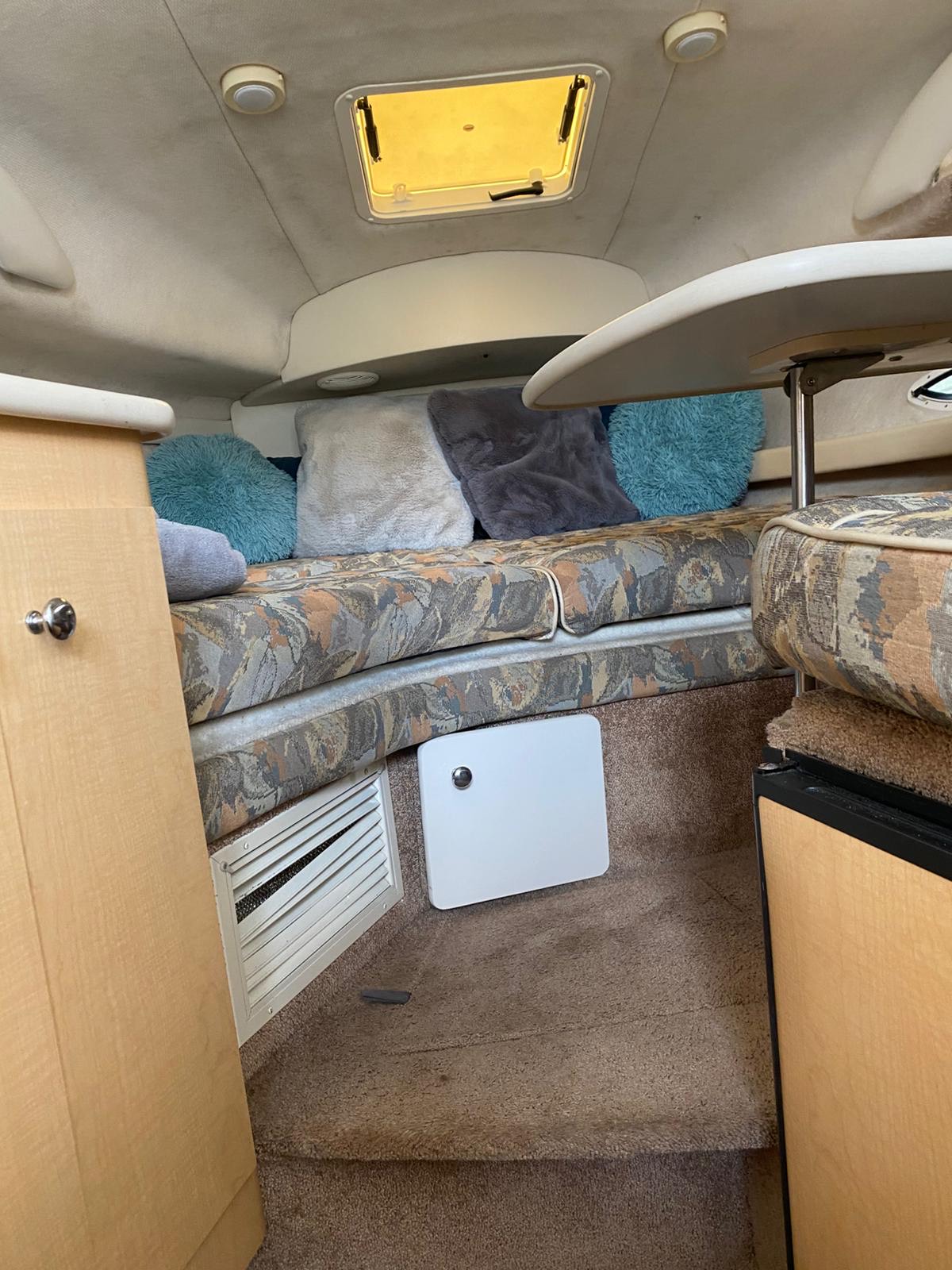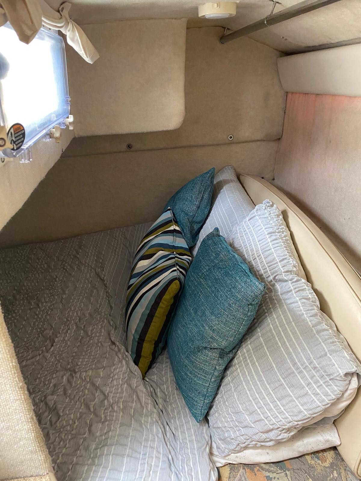 2000 Bayliner 2855 Ciera “Bambino” – 8.7m family cruiser with 5.7L MerCruiser (376 hrs). Well-maintained, spacious, and turnkey-ready. Features full canvas, upgraded upholstery, galley, enclosed head, and sleeps 4. Ideal for weekend cruising or family adventures.